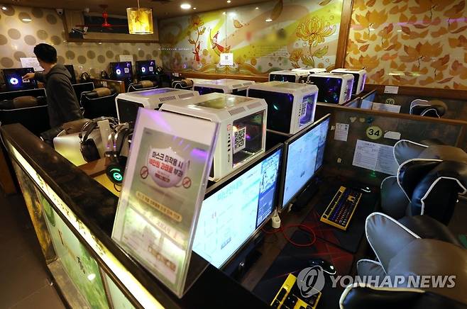 (서울=연합뉴스) 이지은 기자 = 정부의 PC방 영업 제한 조치가 연장된 가운데 일부 PC방 업주들이 항의의 의미로 오후 9시 이후 불은 켜놓은 채 영업은 하지 않은 점등 시위를 하고 있다. 19일 오후 서울시내 한 PC방 모니터가 켜져 있다. 2021.1.19