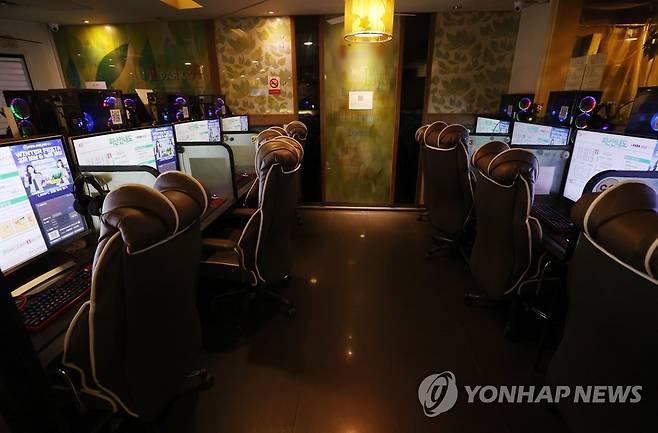 (서울=연합뉴스) 이지은 기자 = 정부의 PC방 영업 제한 조치가 연장된 가운데 일부 PC방 업주들이 항의의 의미로 오후 9시 이후 불은 켜놓은 채 영업은 하지 않는 점등시위를 하고 있다. 19일 오후 서울 시내 한 PC방 모니터가 켜져 있다. 2021.1.19