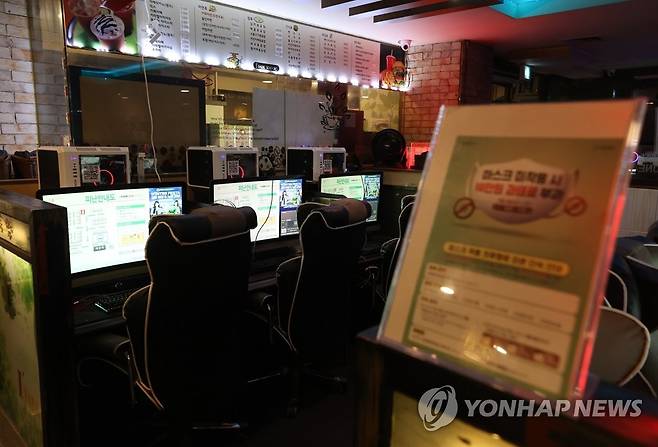 (서울=연합뉴스) 이지은 기자 = 정부의 PC방 영업 제한 조치가 연장된 가운데 일부 PC방 업주들이 항의의 의미로 오후 9시 이후 불은 켜놓은 채 영업은 하지 않는 점등시위를 하고 있다. 19일 오후 서울시내 한 PC방 모니터가 켜져있다. 2021.1.19