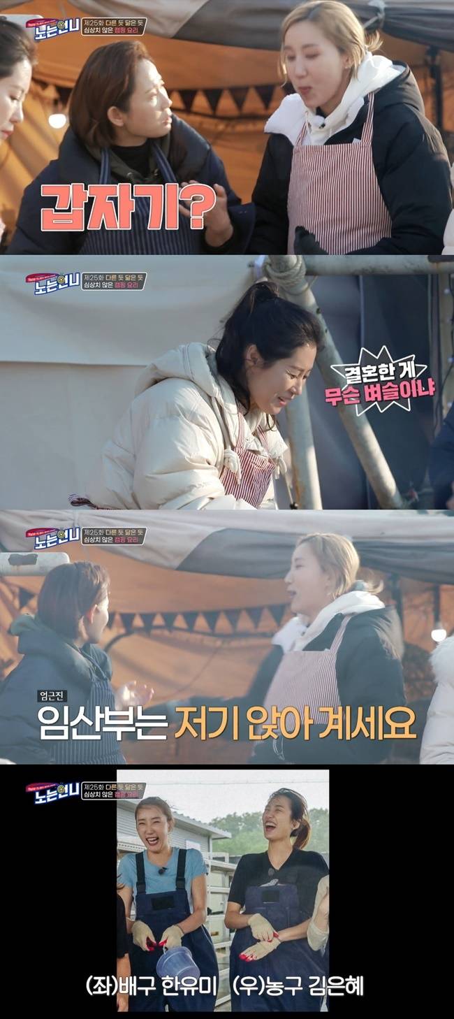 이 가운데 김선영은 "임산부는 저기 앉아계세요"라고 말해 한유미를 당황시켰다. 앞서 '노는 언니'에서 임신 소식을 알렸던 김은혜와 헷갈렸던 것.
