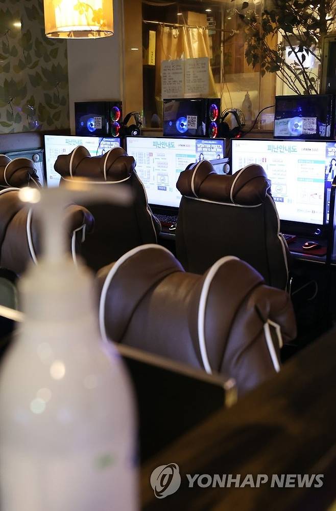 (서울=연합뉴스) 이지은 기자 = 정부의 PC방 영업 제한 조치가 연장된 가운데 일부 PC방 업주들이 항의의 의미로 오후 9시 이후 불은 켜놓은 채 영업은 하지 않는 점등시위를 하고 있다. 19일 오후 서울 시내 한 PC방 모니터가 켜져 있다. 2021.1.19