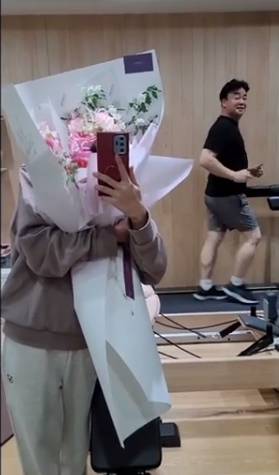 영상 속 백종원은 걷기 운동을 하며 활짝 웃었고, 소유진은 꽃다발을 품에 안고 감격스러워했다.