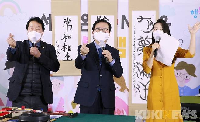 2부에서는 행사 참여 주민들의 새해 소망에 대해 함께 나누고 격려했다. 이어서 장종태 구청장(제구포신), 이선용 구의장(상화상생)의 새해 붓 사위로 새해에 대한 희망과 의지도 나눴다.