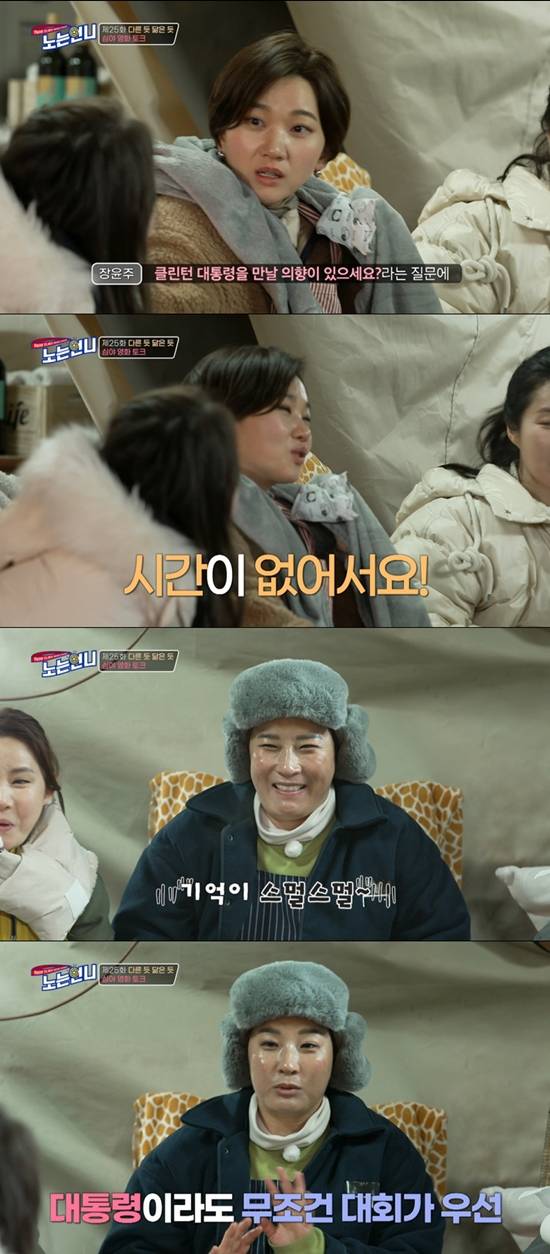 이날 장윤주는 인상적이었던 박세리의 인터뷰를 언급했다. 클린턴 대통령을 만날 의향이 있냐고 묻자 박세리가 "제가 만약 시간이 되고 여유가 된다면 치겠는데, 아무래도 그런 여유가 있을 시간이 없다"라고 답했던 것.