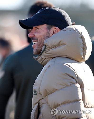 epa08948458 A handout photo made available by Spanish LaLiga club Atletico Madrid shows head coach Diego Simeone during a team's training session at Wanda Sports City in Majadahonda, Madrid, Spain, 19 January 2021. EPA/ATLETICO MADRID/HO HANDOUT EDITORIAL USE ONLY/NO SALES