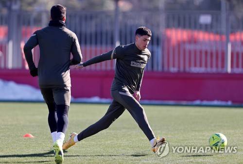 epa08948464 A handout photo made available by Spanish LaLiga club Atletico Madrid shows Uruguayan defender Jose Maria Gimenez during a team's training session at Wanda Sports City in Majadahonda, Madrid, Spain, 19 January 2021. EPA/ATLETICO MADRID/HO HANDOUT EDITORIAL USE ONLY/NO SALES