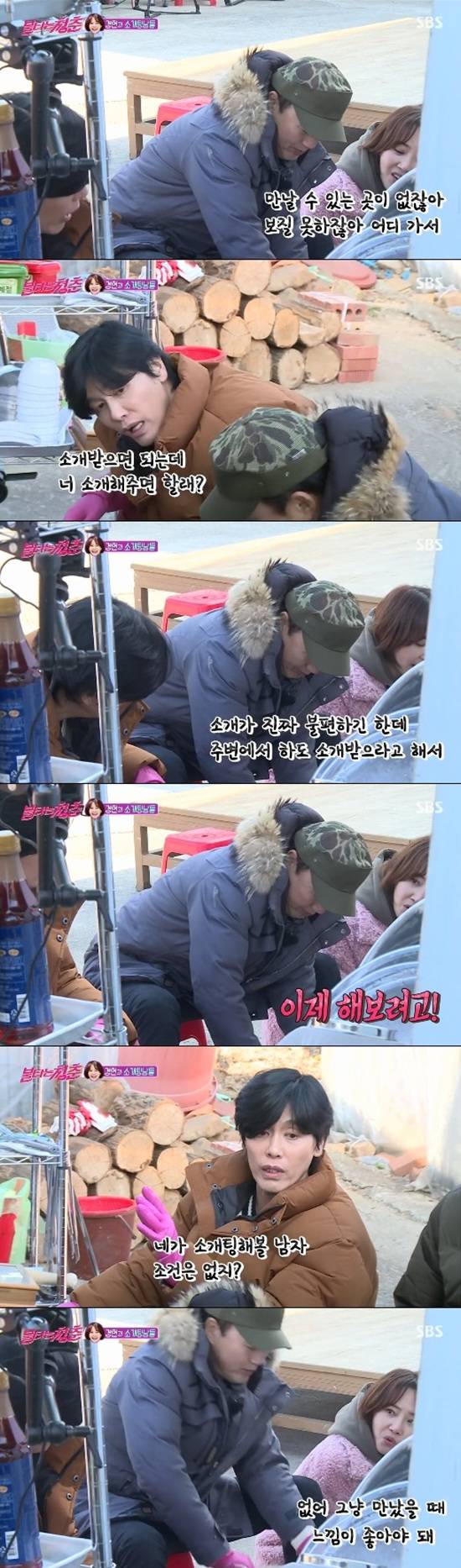 최성국은 소개팅도 하나의 방법이라고 얘기해줬다. 강경헌은 "소개가 진짜 불편하기는 한데 주변에서 하도 소개받으라고 해서 이제 해보려고 한다. 해볼 거다"고 말했다.