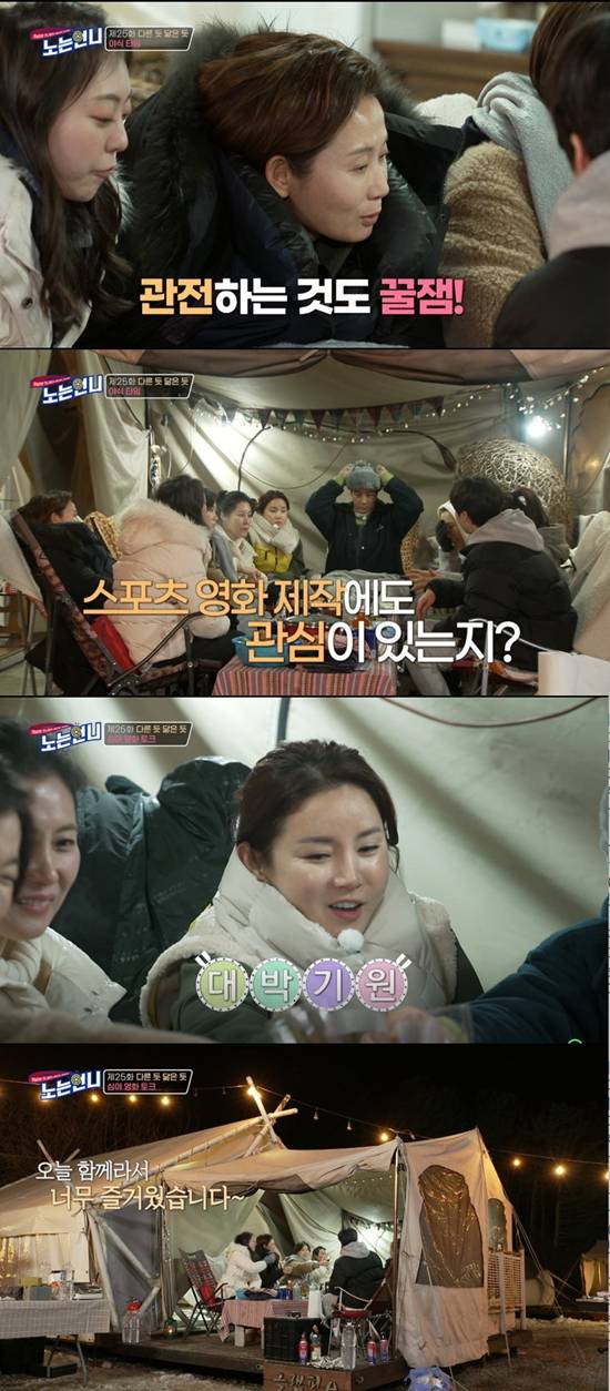이날 '노는 언니'에서 문소리와 김선영은 알차게 장을 본 뒤 요리에 착수했다. 언니들은 두 사람이 한창 요리 중일 때 등장했다. 김온아와 영화 '우리 생애 최고의 순간(이하 '우생순')으로 친분이 있는 문소리는 당시를 회상하며 이야기꽃을 피우기도 했다. 장윤주는 스케줄 관계로 뒤늦게 도착했다.
