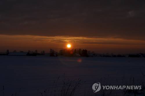 epa08948679 A view of the sunset over Liepupe, Latvia, 19 January 2021. EPA/Valda Kalnina