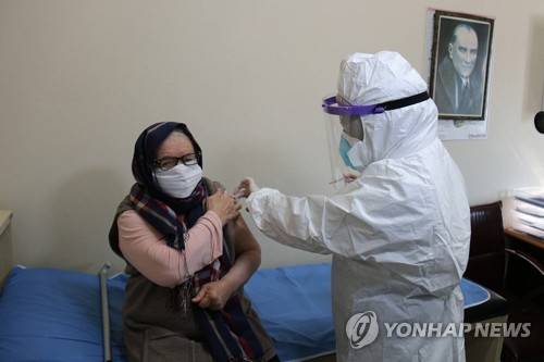 epa08948680 A handout photo made available by Istanbul Municipality press office shows a health worker vaccinates an elderly woman against COVID-19 with Sinovac's Coronavac vaccine at the Kayisdagi Poorhouse in Istanbul, Turkey, 19 January 2021. Turkey began mass vaccinations against COVID-19 of health workers on 14 January after Chinese Sinovac's vaccine received emergency approval. EPA/ISTANBUL MUNICIPALITY PRESS OFFICE HANDOUT HANDOUT EDITORIAL USE ONLY/NO SALES