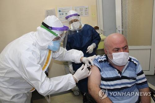 epa08948683 A handout photo made available by Istanbul Municipality press office shows a health worker vaccinates an elderly man against COVID-19 with Sinovac's Coronavac vaccine at the Kayisdagi Poorhouse in Istanbul, Turkey, 19 January 2021. Turkey began mass vaccinations against COVID-19 of health workers on 14 January after Chinese Sinovac's vaccine received emergency approval. EPA/ISTANBUL MUNICIPALITY PRESS OFFICE HANDOUT HANDOUT EDITORIAL USE ONLY/NO SALES