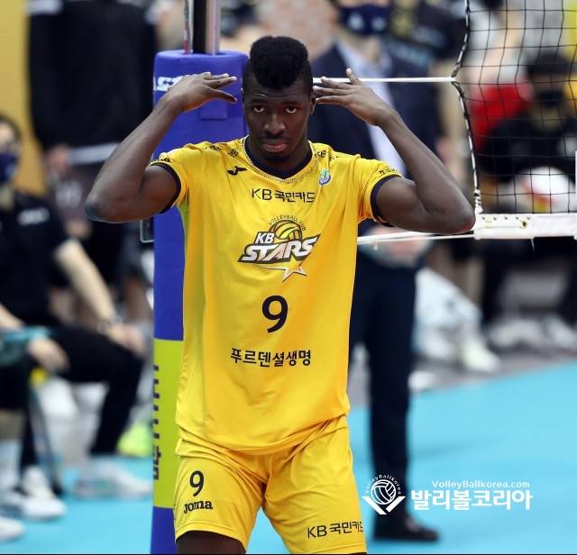 【발리볼코리아닷컴(의정부)=김경수 기자】 19일(화) 경기도 의정부시 의정부체육관에서 열린 프로배구 2020-2021 V리그 4라운드 남자부 KB손해보험 vs OK금융그룹 의정부경기에서 KB손해보험 케이타가 공격을 성공시키고 기뻐하고 있다. 2021. 1.19.
