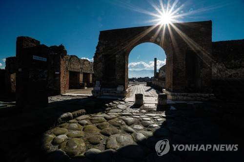 epa08948723 Few visitors at the archaeological area of Pompeii, Naples, Italy, 19 January 2021. Some museums and archaeological sites in Campania are reopening under Covid-19 precautionary measures after closure due to the coronavirus pandemic. EPA/CESARE ABBATE