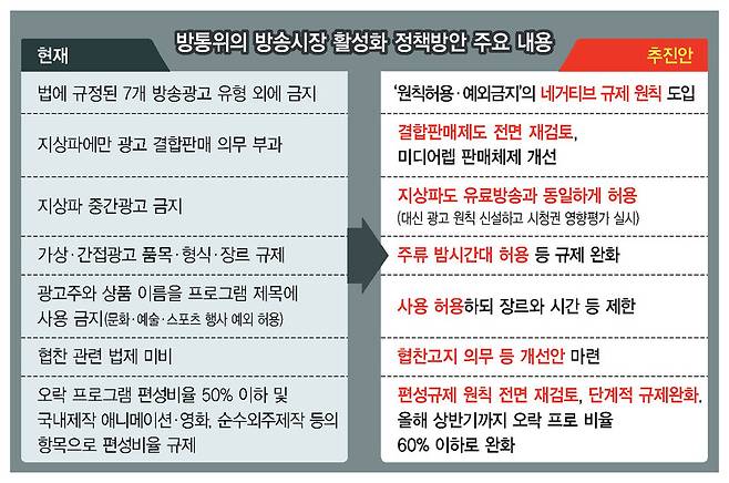 방통위 관계자는 “2018년에 중간광고 등 규제 완화에만 집중한 방안을 추진했던 것과 달리, 이번에는 미디어 생태계 전반을 고려해서 정책안을 만들었다”며 “이번주에 시행령 개정안을 입법예고하고 의견을 더 수렴할 것”이라고 말했다.