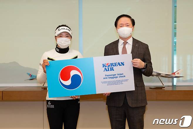 이번 후원 협약에 따라 대한항공은 2022년까지 고진영이 골프 국제대회 및 훈련에 참가하기 위해 대한항공을 이용하는 경우, 프레스티지 항공권을 무상 지원한다. (대한항공 제공) 2021.1.20/뉴스1