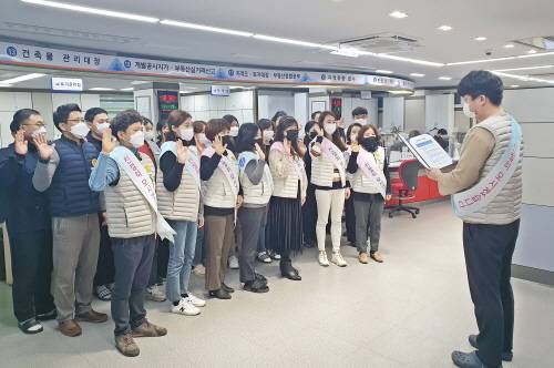 민원봉사과에서는 친절한 공직자의 자세를 몸소 실천하기 위해 전 직원이 스마일 친절 배지를 착용하고 매주 월요일마다 친절 구호를 외친 후 업무에 돌입할 예정이다.