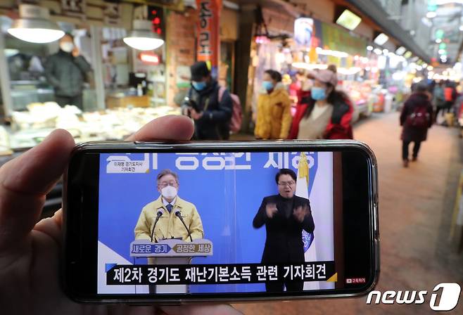 이재명 지사는 이날 기자회견을 통해 전 도민에게 지역화폐로 1인당 10만원을 지급한다고 발표했으며 코로나19 방역상황 등을 고려해 지급 시기 등에 대해서는 결정을 미뤘다. 2021.1.20/뉴스1