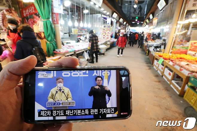 이재명 지사는 이날 기자회견을 통해 전 도민에게 지역화폐로 1인당 10만원을 지급한다고 발표했으며 코로나19 방역상황 등을 고려해 지급 시기 등에 대해서는 결정을 미뤘다. 2021.1.20/뉴스1
