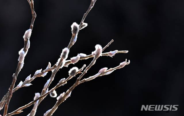 [수원=뉴시스] 김종택기자 = 절기상 대한(大寒)인 20일 경기도 수원시 광교산에 버들개지가 활짝 피어 있다. 2021.01.20.