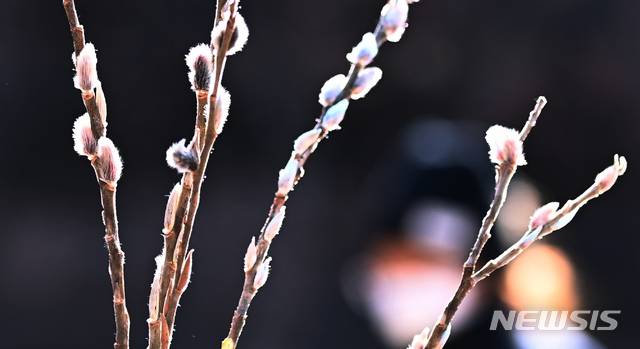 [수원=뉴시스] 김종택기자 = 절기상 대한(大寒)인 20일 경기도 수원시 광교산에 버들개지가 활짝 피어 있다. 2021.01.20.