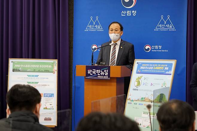 □ 이에, 산림청(청장 박종호)은 산림의 탄소 흡수?저장 기능을 증진하기 위해 ‘2050 탄소중립 산림부문 추진전략(안)’을 선제적으로 마련하고, 1월 20일 대국민 보고회를 가졌다.