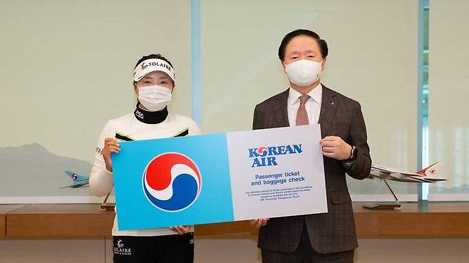 고진영은 대한항공과 맺은 '엑설런스 프로그램(Excellence Program) 후원 계약'에 따라 2022년까지 국제 대회 참가 및 훈련을 위해 대한항공을 이용할 경우 프레스티지 항공권을 무상으로 지원받게 됩니다.
