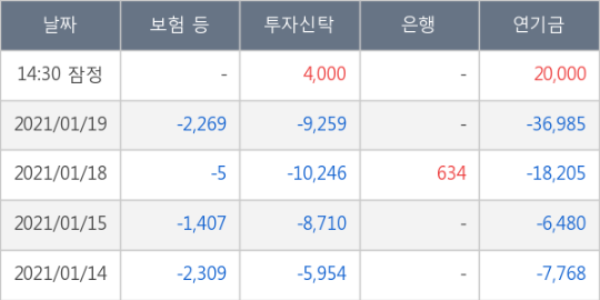 [표] 주요 기관별 순매매량 (단위 주)