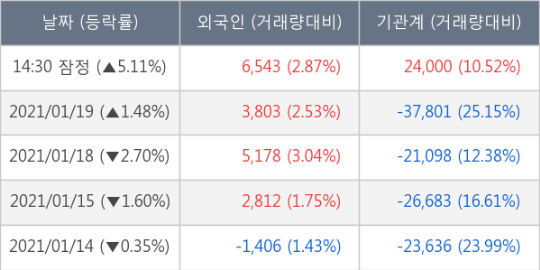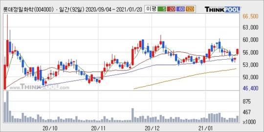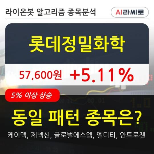 롯데정밀화학, 전일대비 5.11% 상승.. 외국인 기관 동시 순매수 중