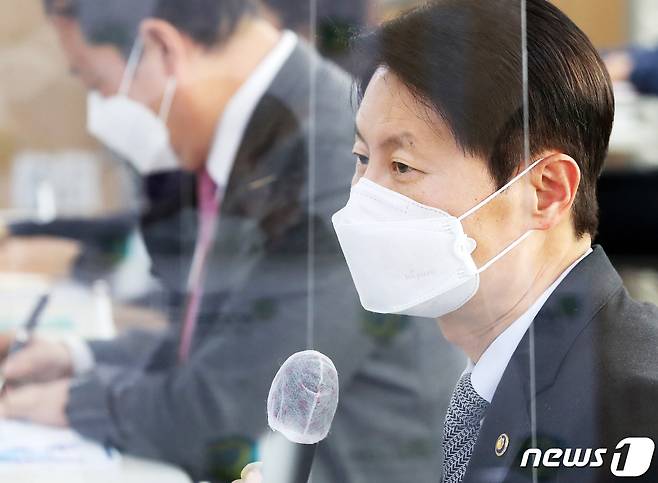(안양=뉴스1) 조태형 기자 = 김강립 식품의약품안전처장이 20일 오후 경기도 안양시 동안구 한국의약품안전관리원을 방문해 신종 코로나바이러스 감염증(코로나19) 치료제·백신 이상사례 관리 체계 점검에 앞서 인사말을 하고 있다. 2021.1.20/뉴스1