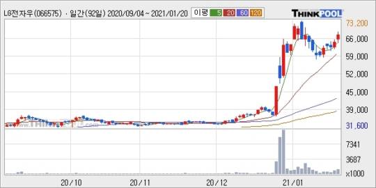 20일 코스피시장에서 LG전자우(066575)가 높은 상승세를 보이고 있다.
