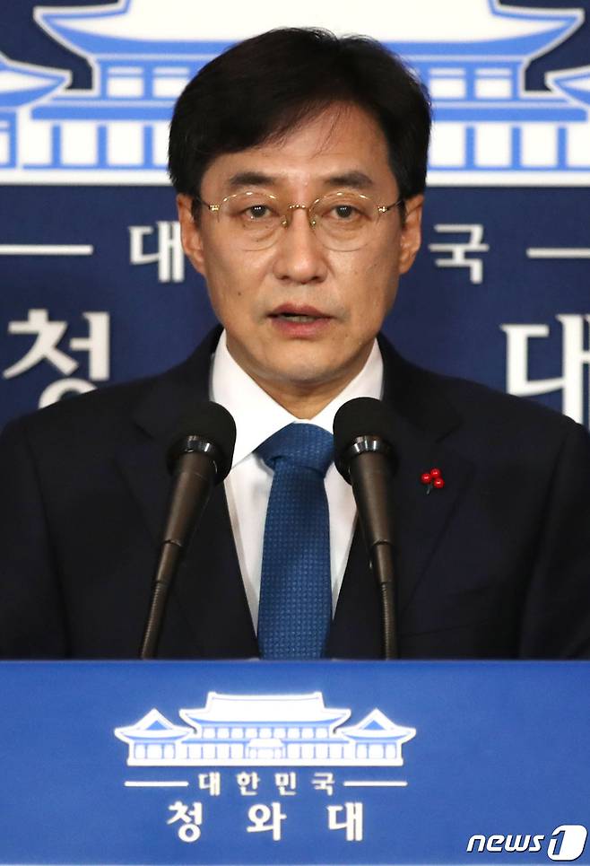 (서울=뉴스1) 이광호 기자 = 강민석 청와대 대변인이 20일 오후 청와대 춘추관에서 문재인 대통령이 SK바이오사이언스 안동공장을 방문해 노바백스사의 스탠리 에르크 대표이사와 영상통화 한 내용 등과 관련한 브리핑을 하고 있다. 2021.1.20/뉴스1