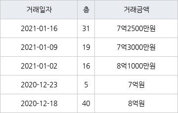 지난 2021년 1월 16일 같은 면적형인 31층 물건이 7억2500만원에 실거래된 것과 비교해 같은 가격이다.