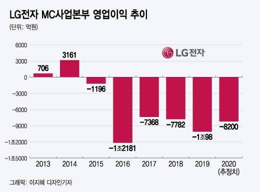 업계에서는 올것이 왔다는 반응이다. MC사업본부가 매년 1조원 가까운 적자로 LG전자 본체마저 휘청거릴 정도여서다. 지난해만도 영업적자가 8000억원대로 추정되는데 만약 MC사업부 손실만 없었다면 LG전자 영업이익은 4조원대로 올라간다.