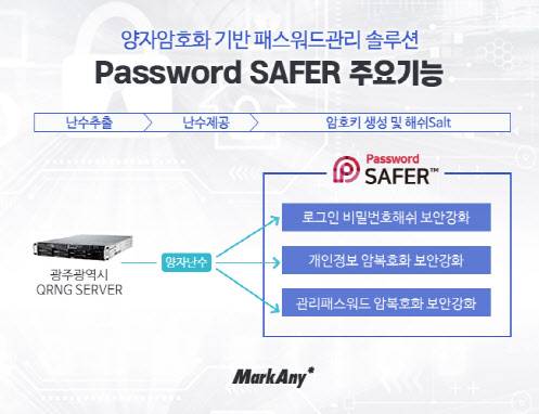 마크애니는 양자난수를 활용해 CCTV패스워드를 암호화하는 솔루션 `패스워드세이퍼 포 씨씨티비(Password SAFER forCCTV)`를 광주시에 구축했다. 관제선터 내 관리 시스템 로그인 정보와 개인정보 암호화에도 양자난수를 적용했다. 이번 구축으로 광주시는 지자체 중 최초로 양자보안이 적용된 CCTV관리체계를 수립하게 됐다.