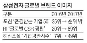 2017년 미국 경제주간지 포브스가 선정한 '명망 높은 글로벌 기업'에서 삼성전자는 70위를 기록하며 전년(2016년) 17위에 비해 53계단 하락했다. 또 삼성전자는 2016년 미국의 경제전문지 포천이 매년 초 발표하는 '세계에서 가장 존경받는 기업 50'에서 35위에 올랐으나 2017년에는 순위권 밖으로 밀려나기도 했다.
