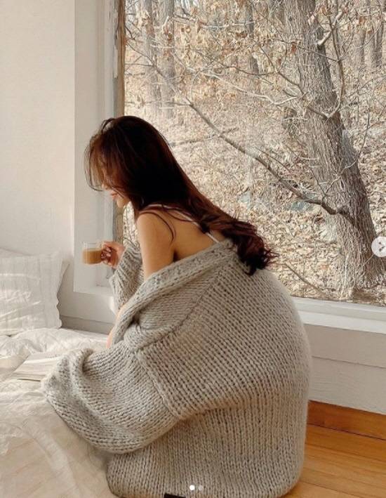 다른 사진에서는 따뜻한 복장을 하고 가녀린 어깨를 내보이며 청순미를 발산했다.
