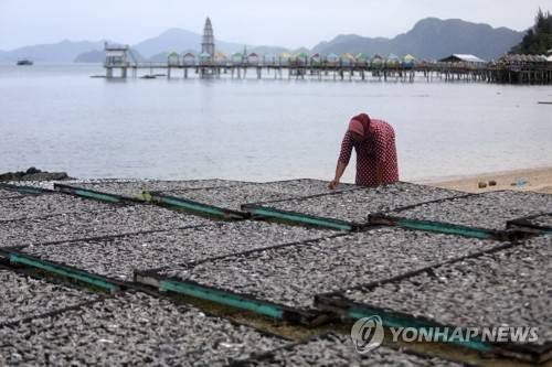 epa08950799 A woman dries fish to make dried fish products in Lhok Seudu, Aceh Besar, Indonesia, 20 January 2021. According to the Indonesian Chamber of Commerce and Industry, there is a strong expectation that the distribution of vaccines in the country will boost economic recovery, including in the fisheries and marine sectors. EPA/HOTLI SIMANJUNTAK