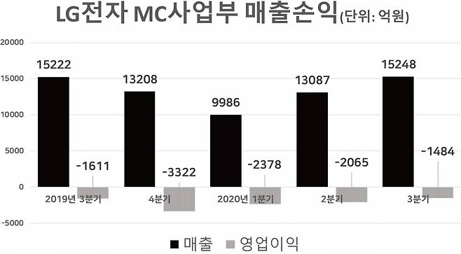 스마트폰 시대에 발빠르게 대응하지 못한 LG전자는 2010년 MC사업본부에서 6540억원의 적자로 돌아섰다. 이듬해 LG전자는 6년 만에 1조원의 유상증자까지 동원해 스마트폰 만회에 나섰지만 이미 경쟁사들에 빼앗긴 주도권을 되찾기는 역부족이었다. 특히 MC사업본부는 2015년 2분기부터 적자를 기록한 이래 23분기 연속 영업손실을 내고 있다. 누적 손실 규모는 5조원에 달한다.
