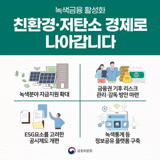 녹색금융 활성화, 친환경·저탄소 경제로 나아갑니다