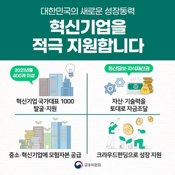 대한민국의 새로운 성장동력. 혁신기업을 적극 지원합니다.