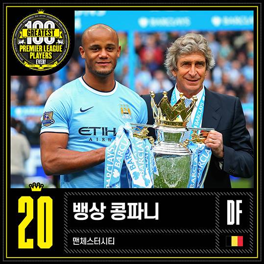 성과: ‘캡틴’ 콩파니는 맨체스터시티가 놀라운 상승세를 보내는 내내 변함이 없었다. 2008년 시티에 합류한 이후, 4번의 프리미어리그 우승컵을 들어 올렸다. 콩파니는 시티를 이전에는 비할 수 없는 높은 위치까지 이끄는 데 모범이 되는 선수였다.