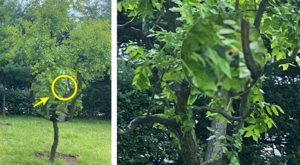 끝내 매의 눈을 가진 팬들에 의해 맨 오른쪽 나무에 앉아있는 토토의 모습이 포착됐는데요, 나뭇잎으로 교묘히 가려진 토토는 까만 눈으로 나름의 존재감을 나타내고 있었습니다.
