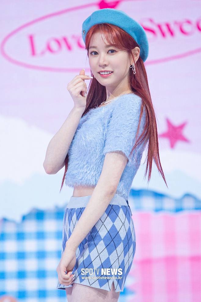 [스포티비뉴스=곽혜미 기자] 걸그룹 체리블렛 첫 번째 미니 앨범 '체리 러시(Cherry Rush)' 발매 기념 쇼케이스가 20일 오후 온라인 생중계로 진행됐다. 체리블렛 보라가 포즈를 취하고 있다.