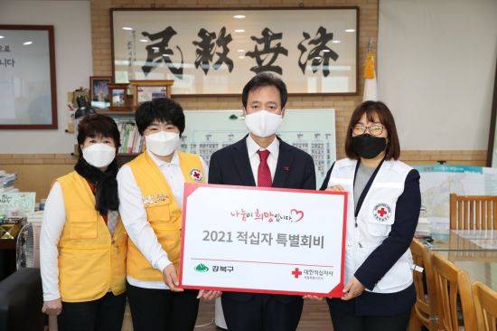 강북구(구청장 박겸수)가 19일 구청장실에서 '2021년 적십자 특별회비 전달식'을 열었다.