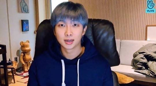RM은 19일 브이라이브(V LIVE)를 진행하며 팬들과 소통했다.