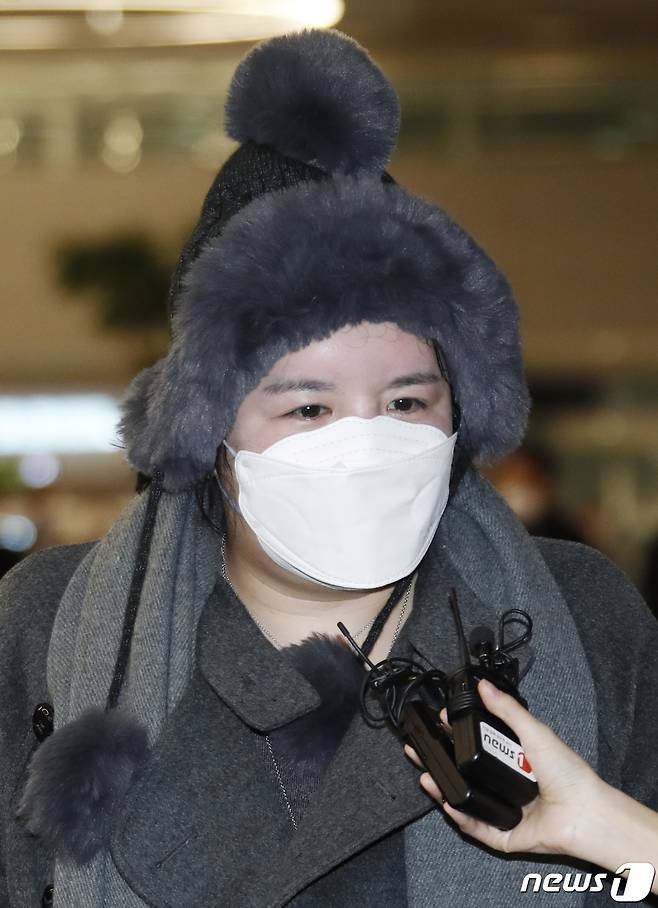 (인천공항=뉴스1) 권현진 기자 = 방송인 에이미가 20일 인천국제공항을 통해 중국 광저우에서 입국한 뒤 인터뷰를 하고 있다
