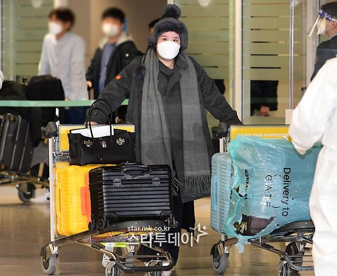 에이미가 20일 오후 인천국제공항을 통해 입국하고 있다.