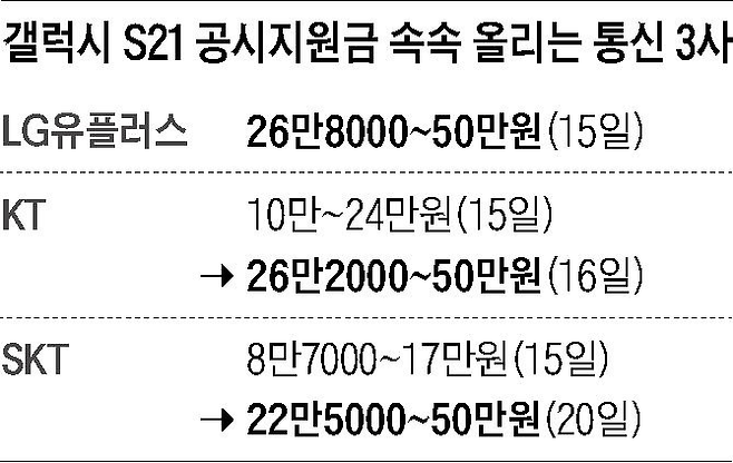 ◇통신3사의 ‘갤럭시S21’ 일병 구하기