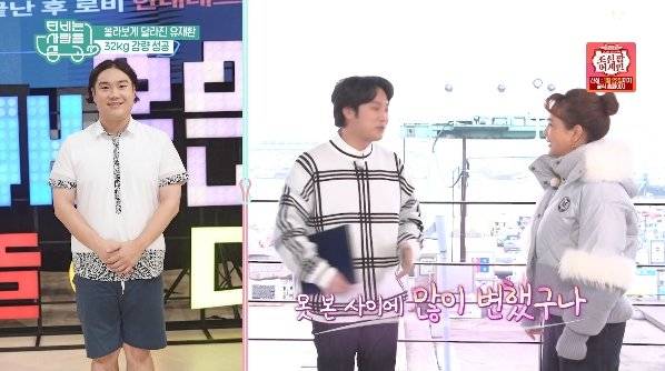 이날 유재환은 날씬해진 모습으로 눈길을 끌었다. 현주엽, 김원희는 “몰라보겠다” “살이 많이 빠졌다”고 칭찬했다.