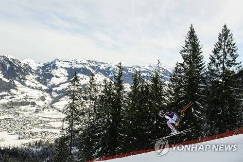 epa08951231 Nicolas Raffort of France in action during a training run for the men's Downhill race of the FIS Alpine Skiing World Cup event in Kitzbuehel, Austria, 20 January 2021. EPA/CHRISTIAN BRUNA